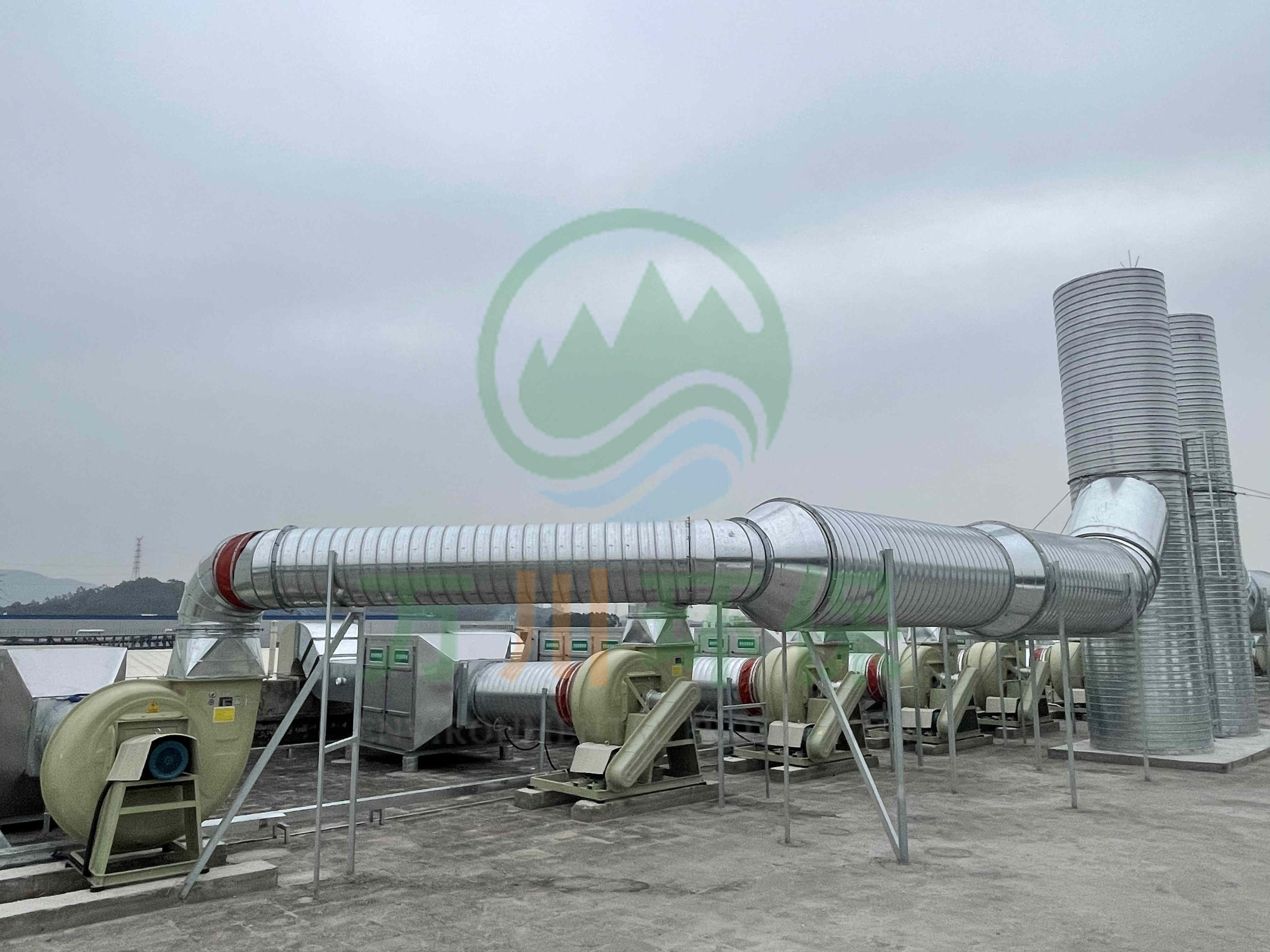 在廢氣處理上選用了活性炭吸附法,我們以活性炭作為吸附介質,廢氣通過活性炭吸附裝置,活性碳吸附有機揮發物,使其與氣體混合物分離,從而使氣體得到凈化。