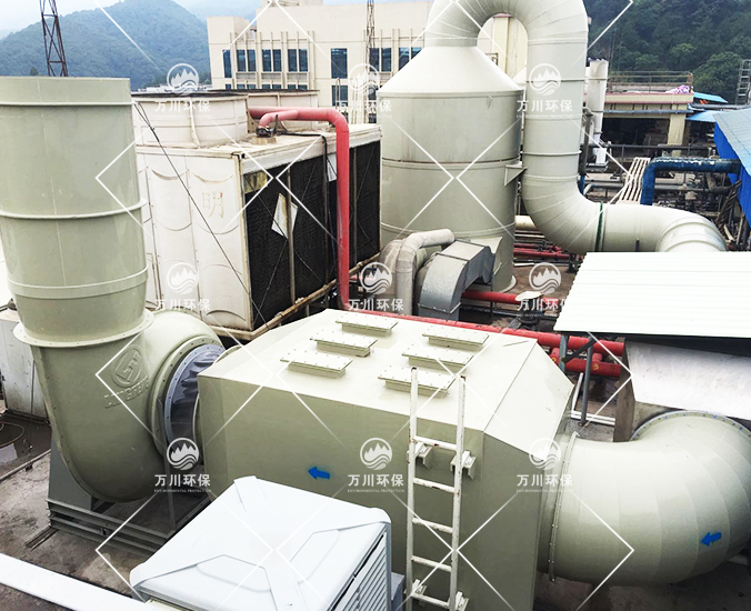 博敏公司有三間廠房,每間廠房均設有生產線,字符、阻焊工序產生的揮發性的廢氣通過管道已接駁到樓頂,經過原有噴淋塔洗滌后排放。但是這種方法只能清除少量的廢氣,并不能達到環保法律法規的要求。所以委托我們萬川環保定制了三套“除霧器+UV光氧凈化器+活性炭吸附裝置”。