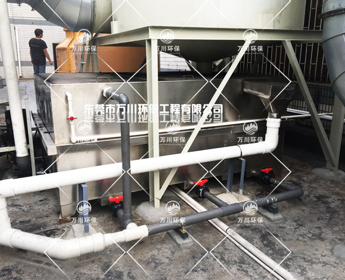 粉塵在風(fēng)機的作用下進(jìn)入風(fēng)管,粉塵進(jìn)入噴淋塔后,噴淋系統(tǒng)從塔中部向下均勻地噴出水,白炭黑粉塵與水結(jié)合沉淀到污水池里,干凈的空氣排出,達(dá)到凈化的目的。